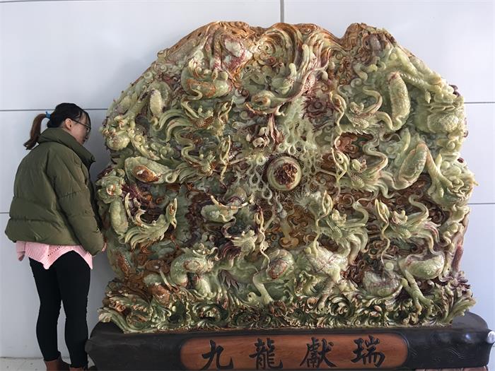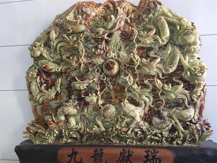 一、拍賣標(biāo)的:九龍獻(xiàn)瑞玉石雕刻擺件一件,長(zhǎng)2.16m,高2m。參考價(jià)9.8萬元。