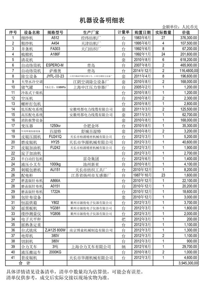 2、設(shè)備一批,整體拍賣,參考價3945300元;