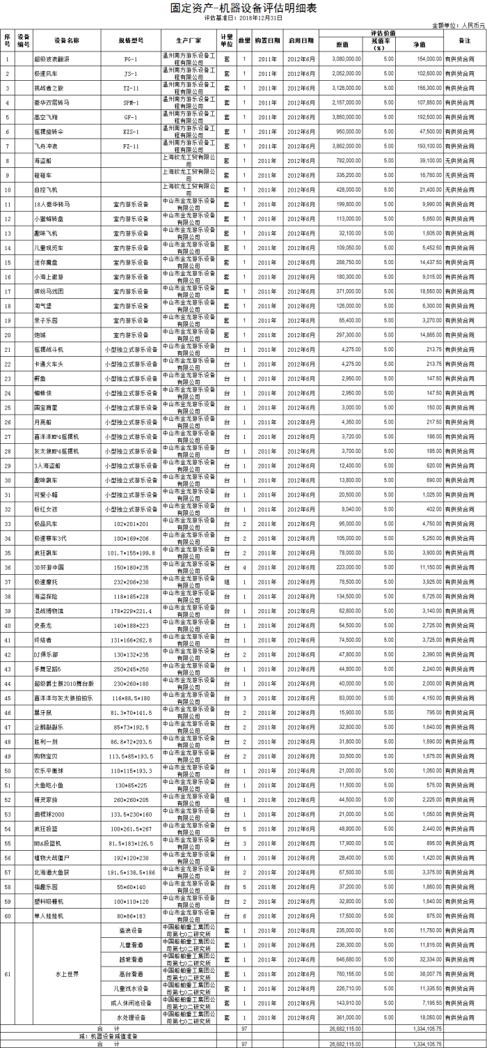 一、拍賣標(biāo)的:金領(lǐng)歡樂(lè)世界廢舊設(shè)施設(shè)備一批,包括:1、游樂(lè)場(chǎng)廢舊設(shè)備一批,參考價(jià)133.41萬(wàn)元。該批設(shè)備已停運(yùn)三年以上,按現(xiàn)狀拍賣;2、空調(diào)等制冷設(shè)備,參考價(jià)21.47萬(wàn)元;3、一般桌椅、貴重桌椅、辦公用品、廚具用品,參考價(jià)4.58萬(wàn)元。標(biāo)的詳情見所附清單。