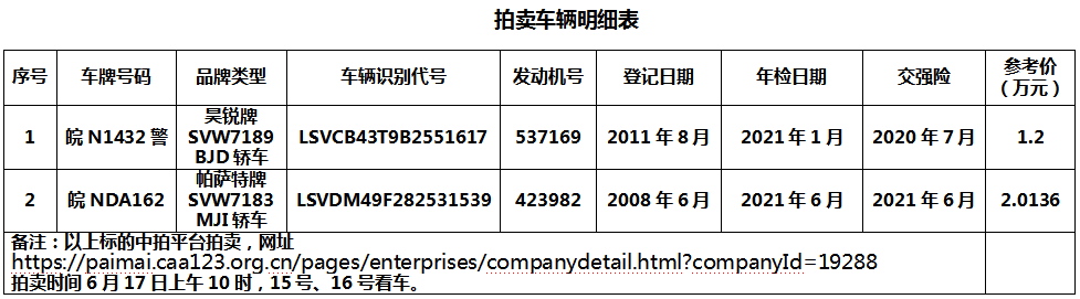 1、皖N1432警昊銳牌SVW7189BJD轎車,2011年8月1日注冊,參考價1.2萬元;