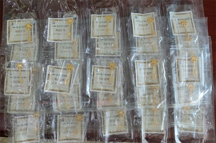 2、中國(guó)農(nóng)業(yè)銀行金鑰匙30枚,質(zhì)量5克/枚。優(yōu)先整體拍賣,整體無(wú)人競(jìng)買,在分拆為每枚為一個(gè)標(biāo)的。參考價(jià):1836元/枚。競(jìng)買保證金整體為1萬(wàn)元,每枚保證金1000元。