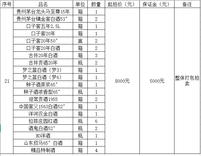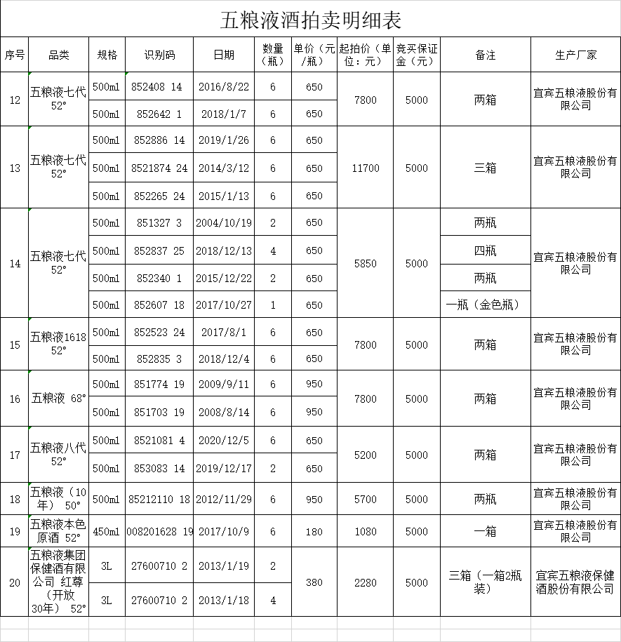 備注:1、以上茅臺酒及五糧液酒均經(jīng)生產(chǎn)廠家鑒定。