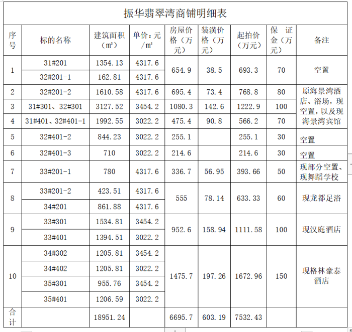 一、拍賣標(biāo)的:六安市振華翡翠灣沿磨子潭路商業(yè)用房,詳見下方清單: