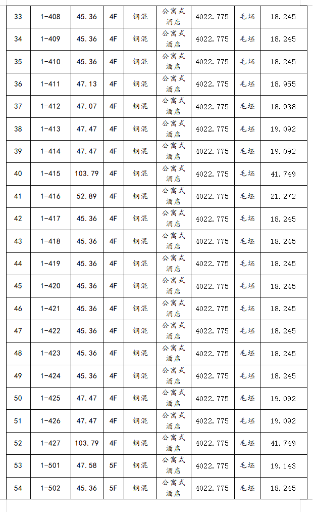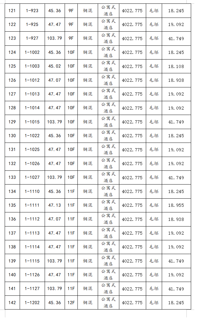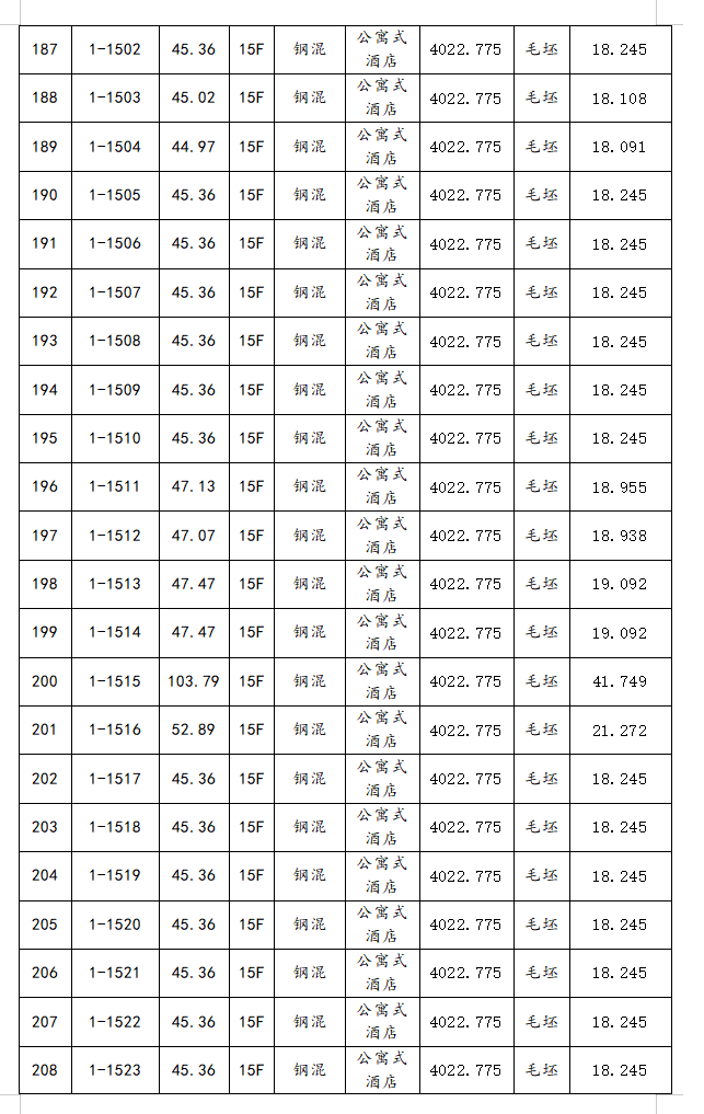 具體每套房屋所在樓棟、房號(hào)、面積、樓層、房屋用途、單價(jià)及每套價(jià)格詳見以下標(biāo)的物清單:
