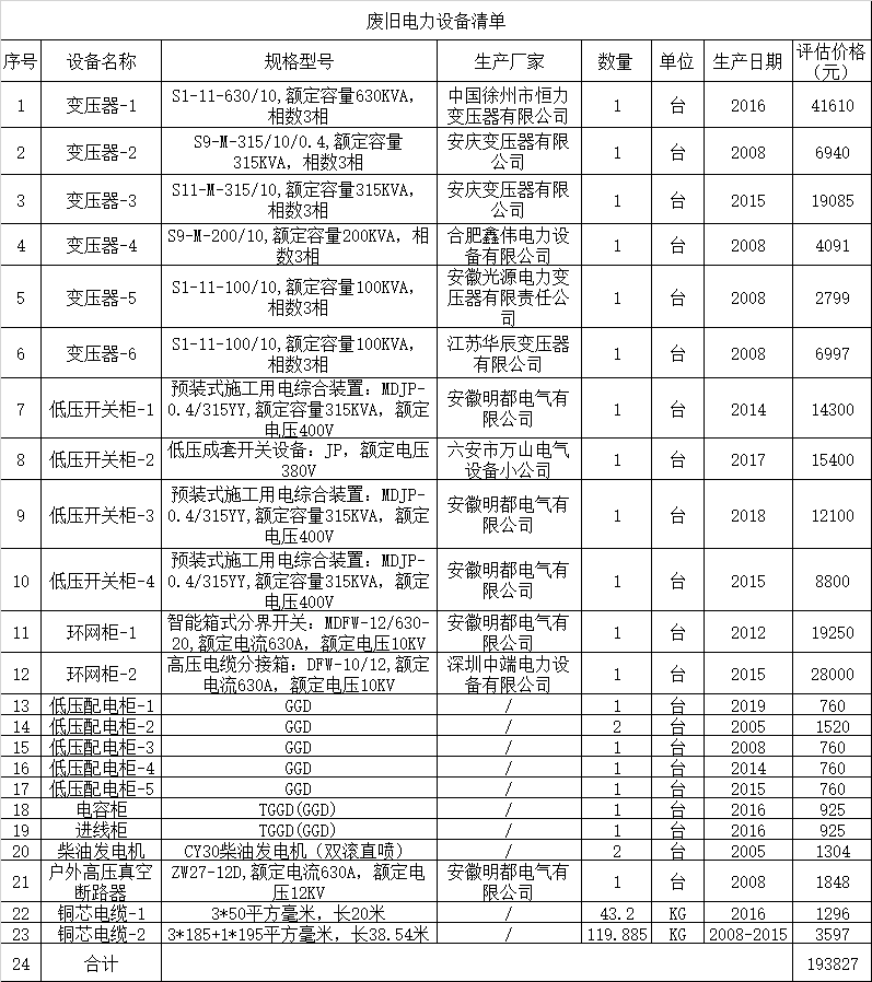一、拍賣標(biāo)的:廢舊電力設(shè)備一批,包括:變壓器、電纜、低壓配電柜等,參考價(jià)17.45萬元。保證金2萬元。
