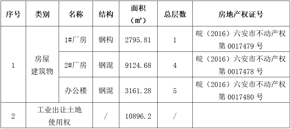 一、拍賣標(biāo)的:六安市開(kāi)發(fā)區(qū)工業(yè)房地產(chǎn):開(kāi)發(fā)區(qū)淠河路以西原六安合眾機(jī)械制造有限公司工業(yè)房地產(chǎn),包括: