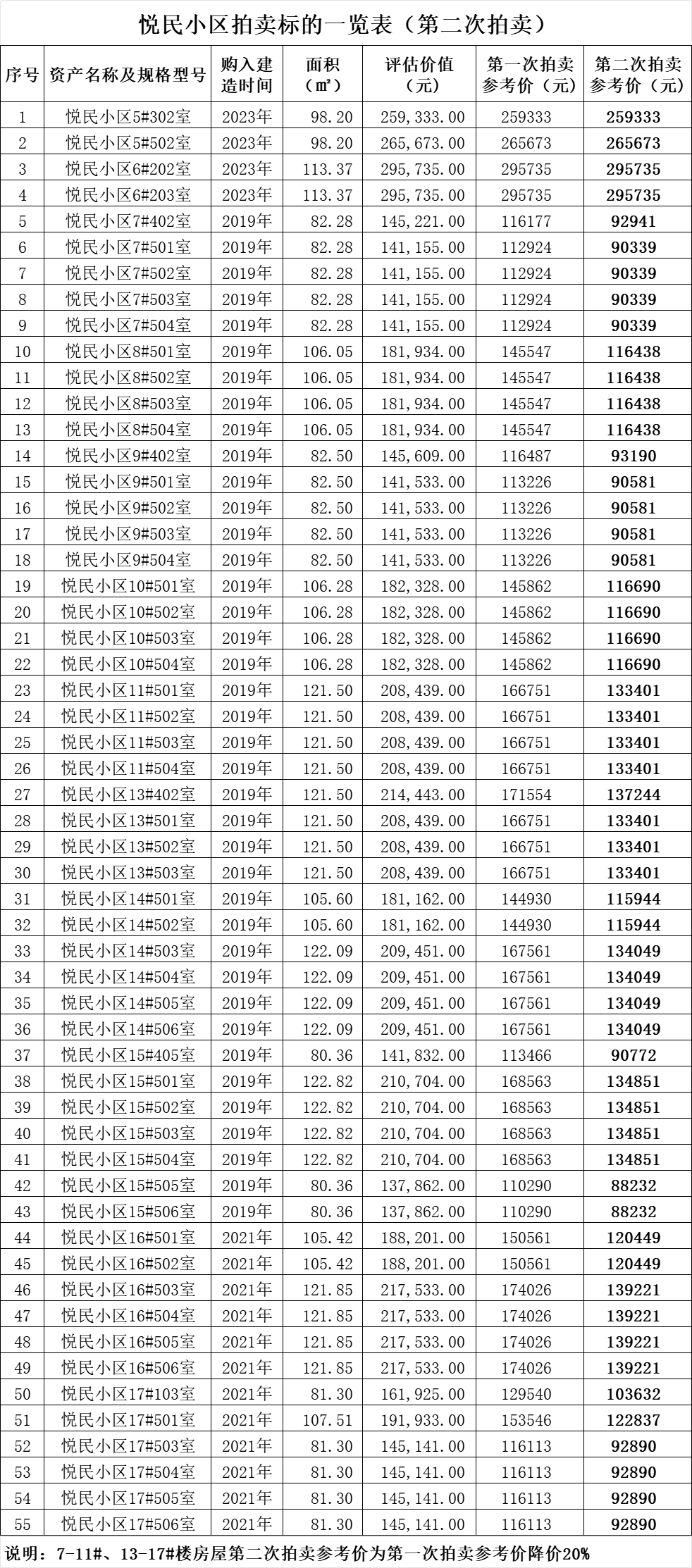 1、2025年1月24日15時(shí)拍賣:佛子嶺鎮(zhèn)悅民小區(qū)房產(chǎn)55套,總建筑面積約5713平方米,土地性質(zhì)為國(guó)有劃撥土地,本次拍賣不含土地。(詳情及拍賣參考價(jià)等見下方附表↓)