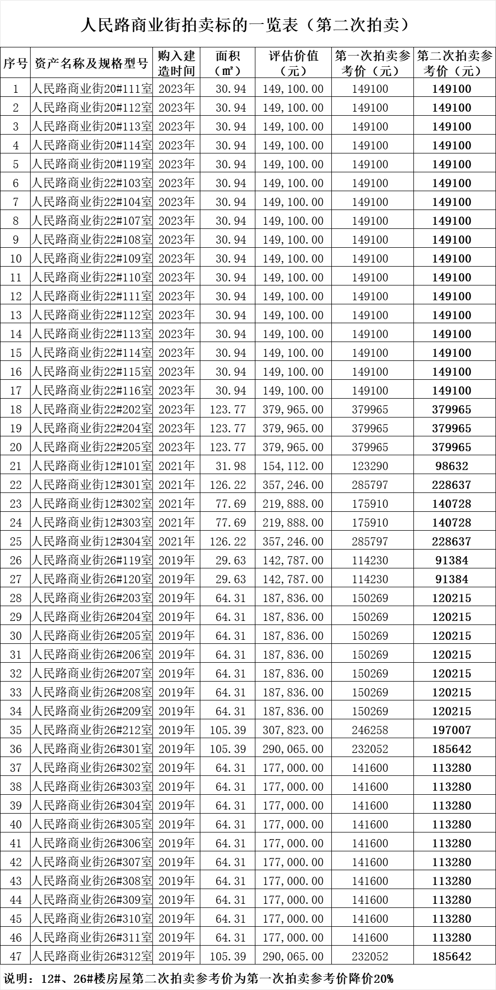 2、2025年1月24日15時(shí)30分拍賣:佛子嶺鎮(zhèn)人民路商業(yè)街房產(chǎn)47套,總建筑面積約2806平方米,土地性質(zhì)為國(guó)有劃撥土地,本次拍賣不含土地。(詳情及拍賣參考價(jià)等見下方附表↓)