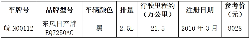 一、拍賣標的:皖N00112尼桑天籟二手車一輛。參考價:8028元,競買保證金:5000元。詳見下方清單: