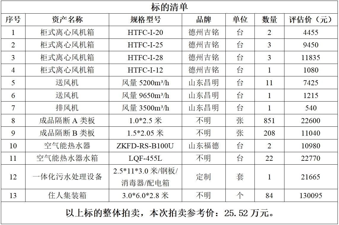 一、拍賣標的:六安市中醫(yī)院閑置資產(chǎn)一批,包括:一體化污水處理設備、柜式離心風機箱、空氣能熱水器、送風機等,參考價:25.52萬元,競買保證金:2萬元。